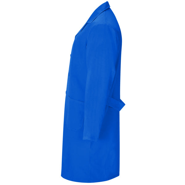 Bata de serviços, unisexo e de manga comprida: · Gola com lapela. · Abertura central com 5 botões no mesmo tom. · Um bolso no peito e dois laterais. · Cós traseiro.